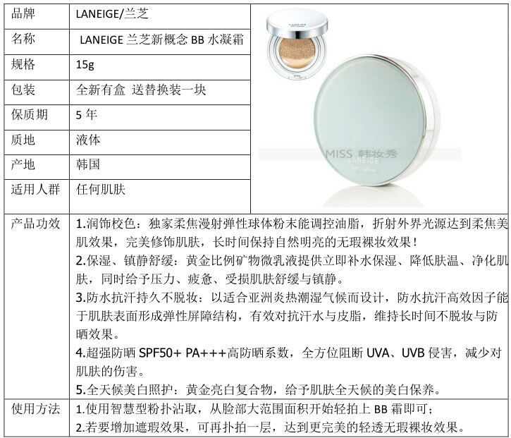兰芝限量气垫BB